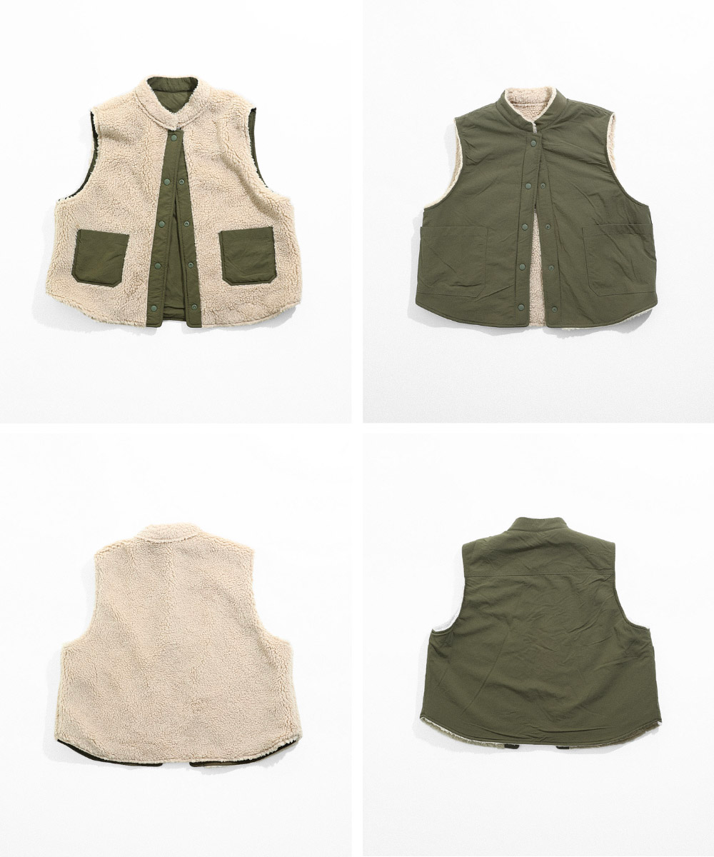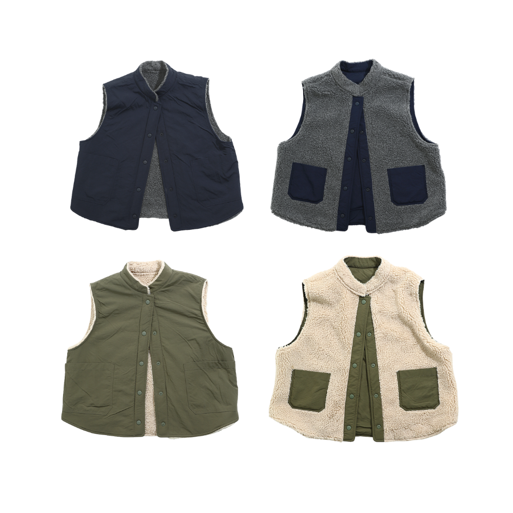 덤블 리버서블 조끼로 겨울 스타일을 더욱 다채롭게 만들어 보세요.