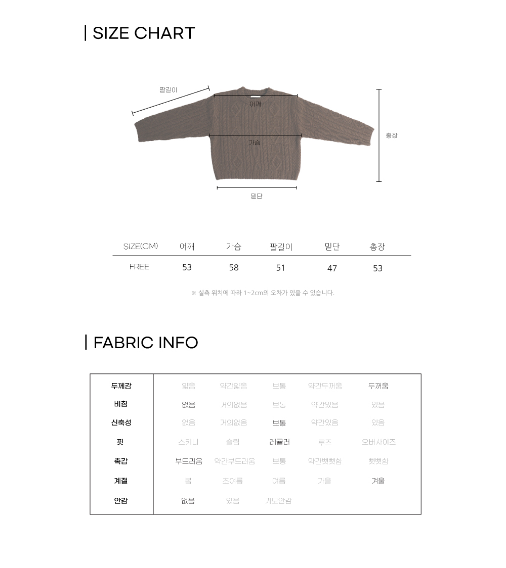 기본 디자인으로 오래도록 함께할 케이블 니트를 제안 드려요.