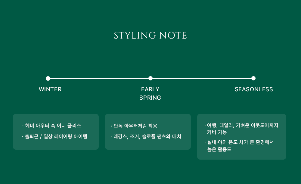 무엇보다 슬로플리스 라인 전 제품과의 레이어링 호환성을 고려해