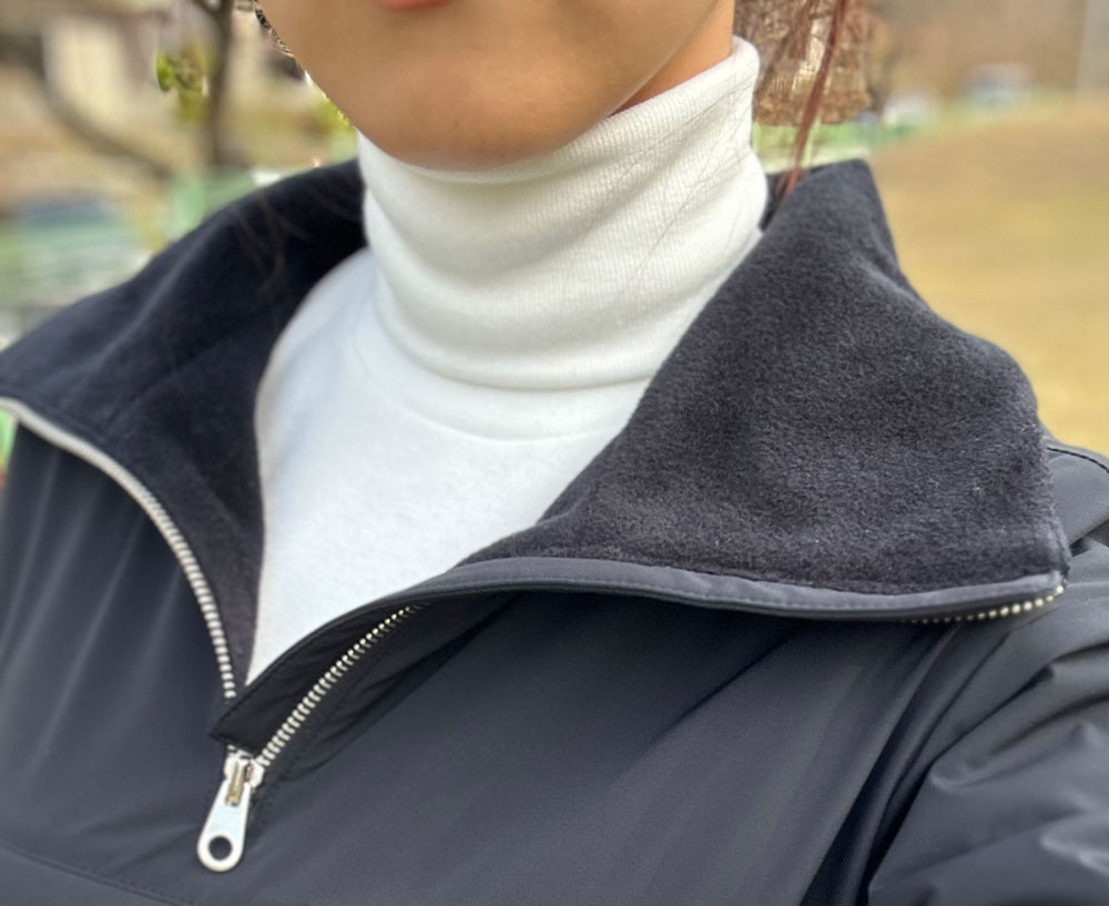 하이넥 디자인으로 목의 체온을 따뜻하게 유지합니다.
