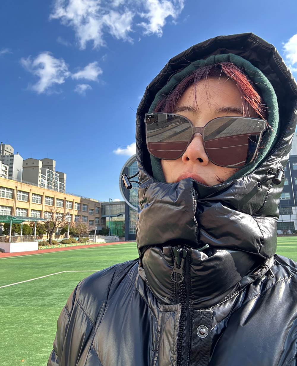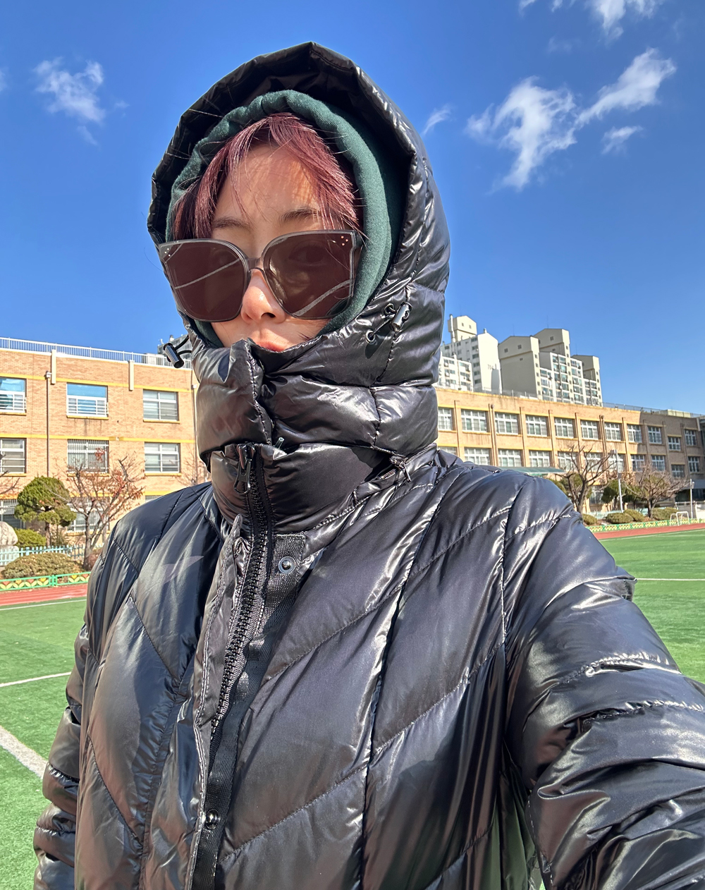 넓은 후드는 머리와 얼굴까지 충분히 막아주고