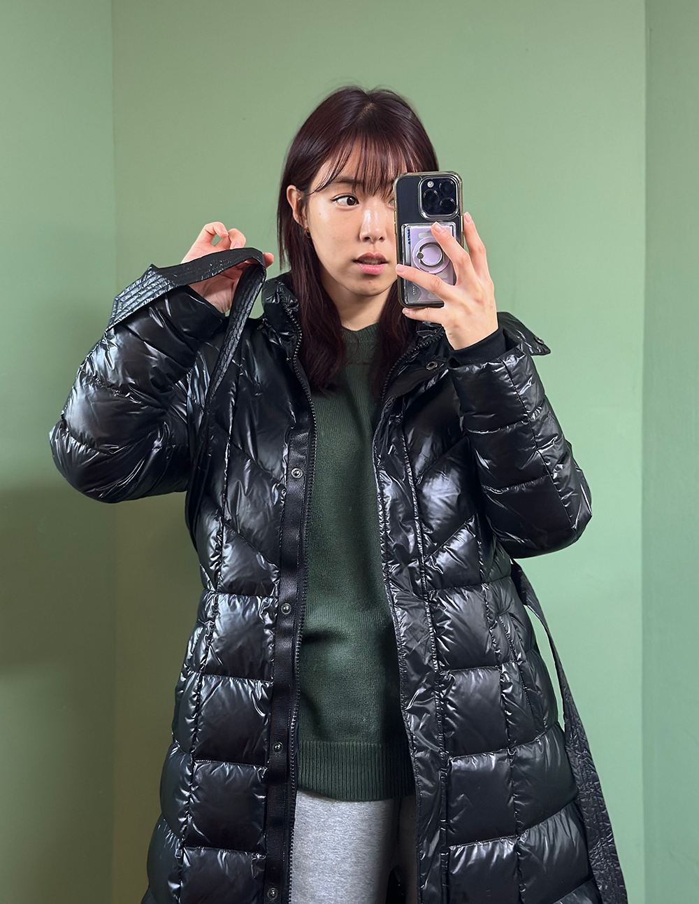 맥시롱패딩 점퍼입니다.