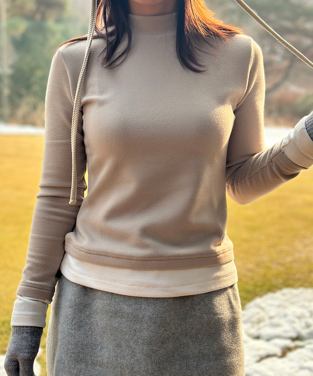 플리스 소재로 제작된 목폴라 티셔츠입니다.